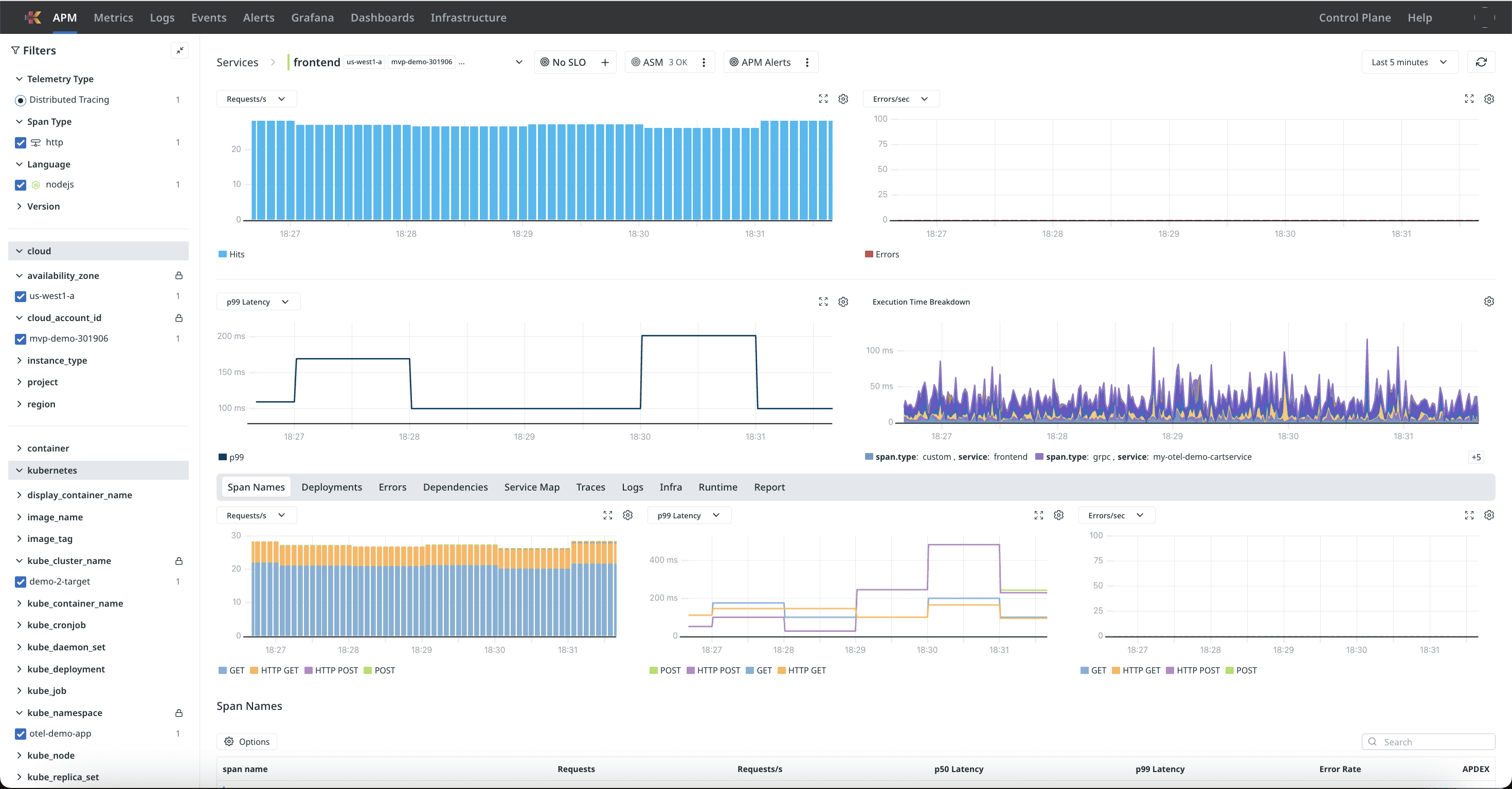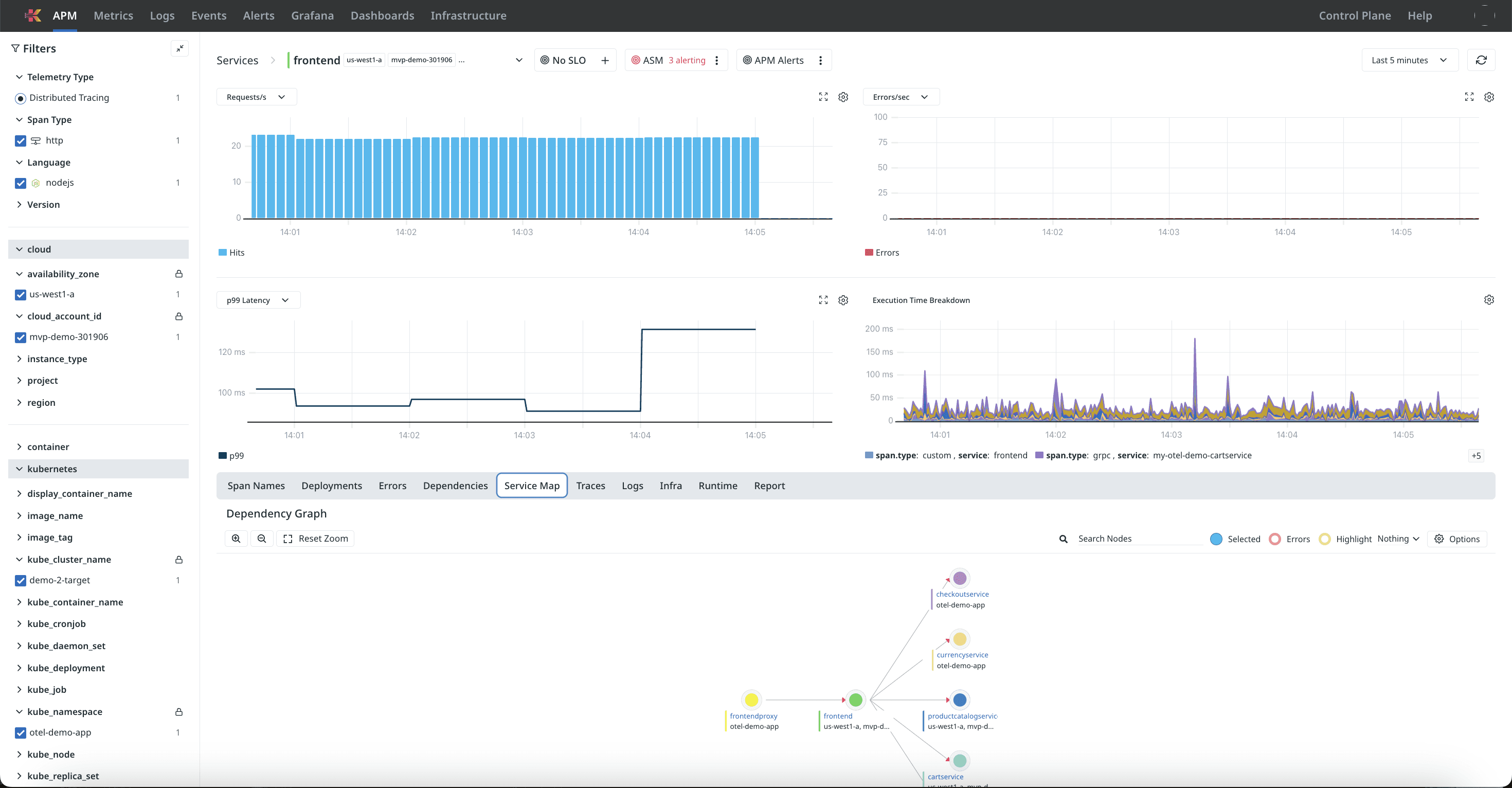 Gain a comprehensive view with integrated metrics, logs, events, traces, continuous profiling, and real user monitoring.