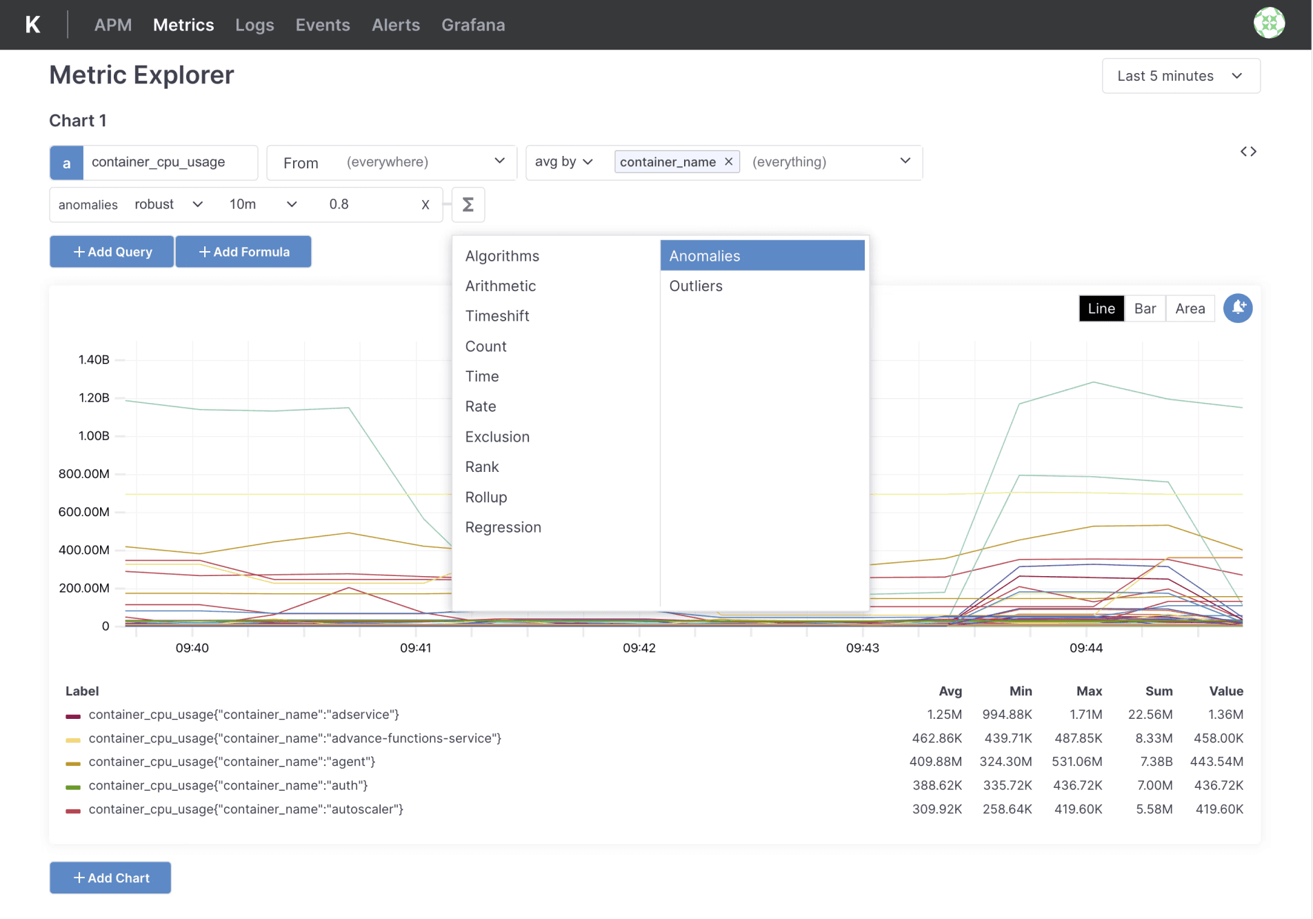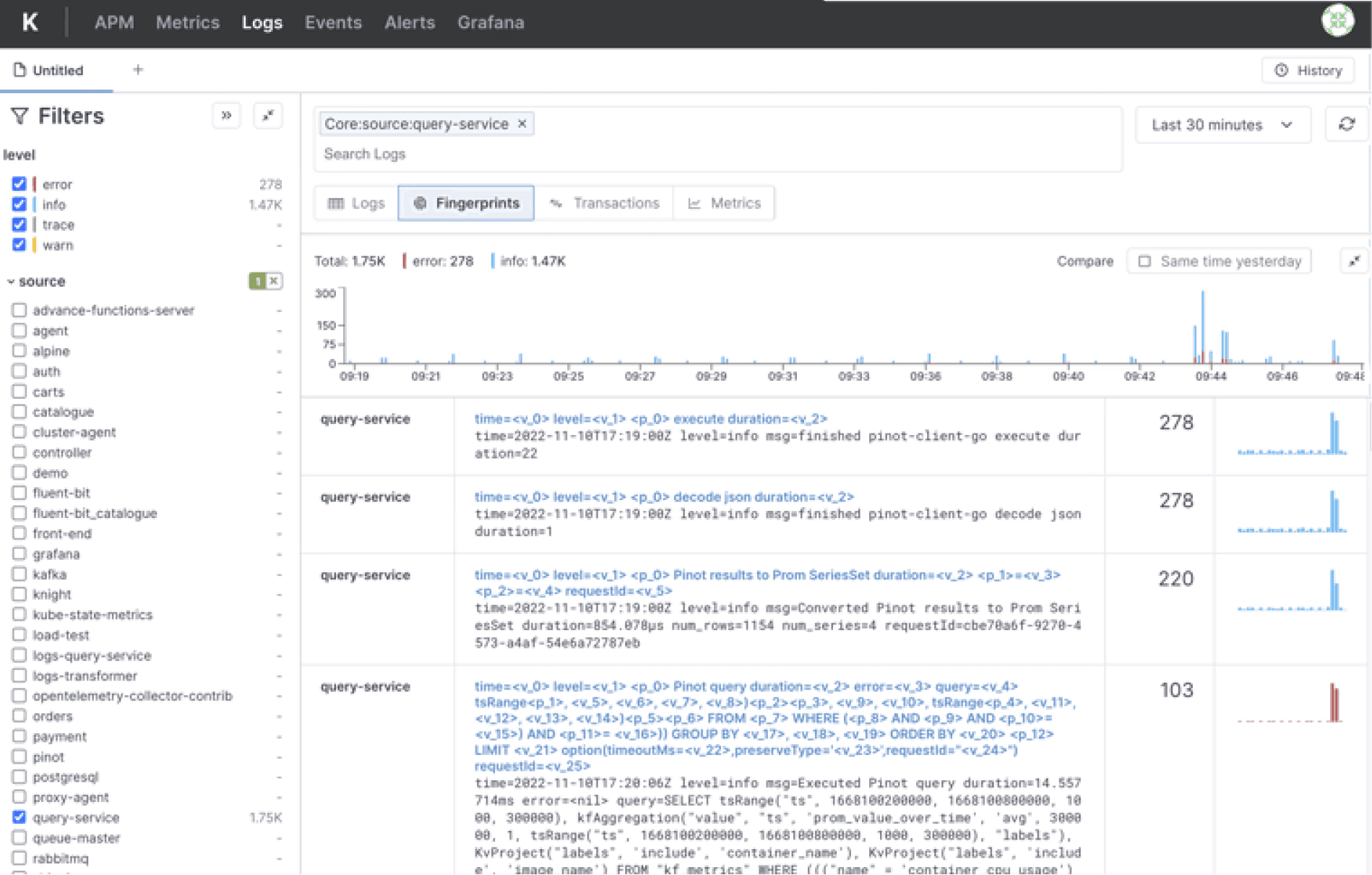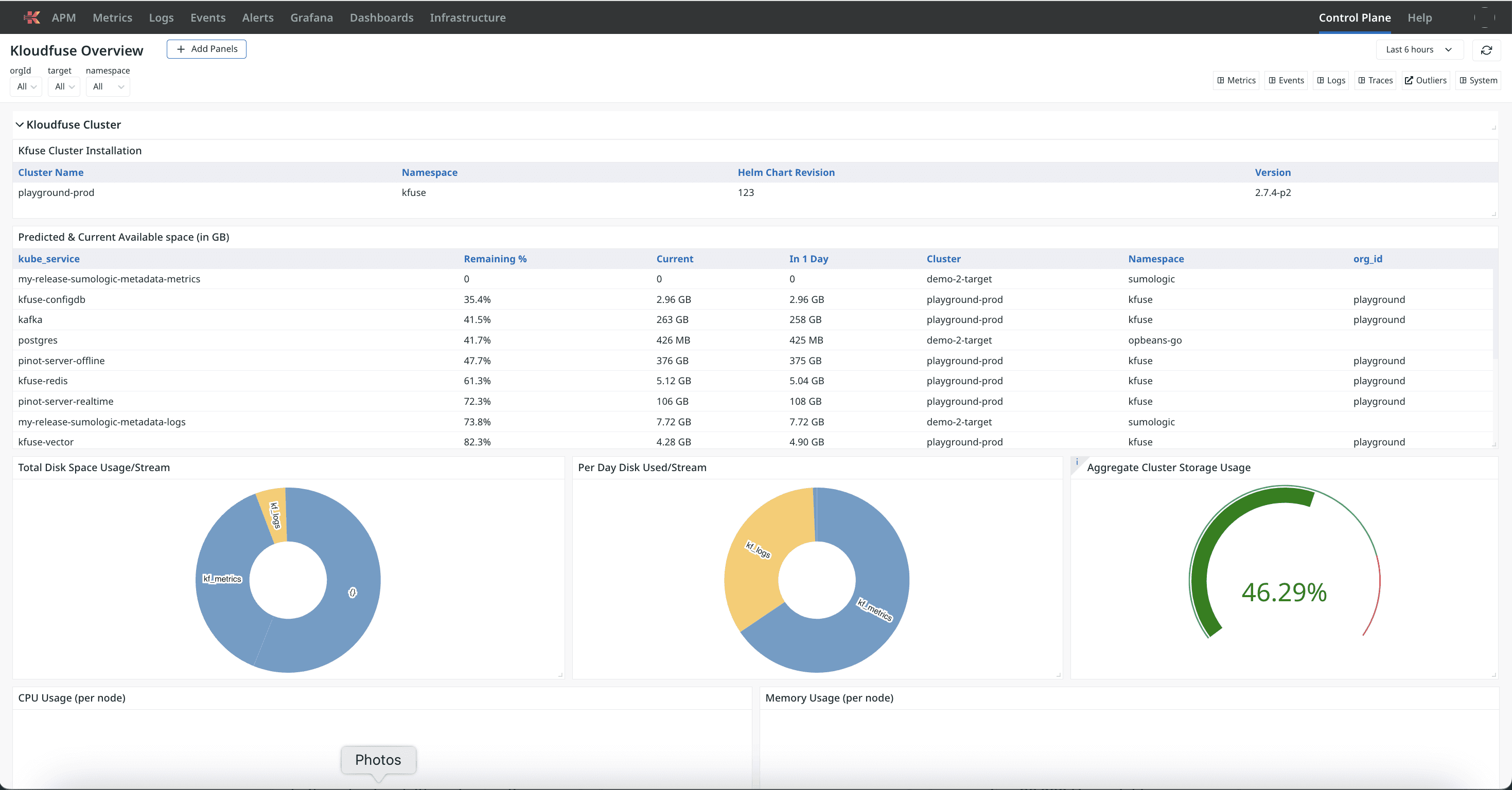 If you are used to Grafana, you can also use the embedded Grafana dashboards within Kloudfuse.